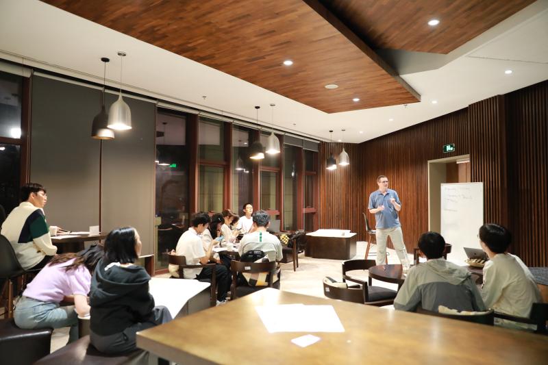 As night fell, amidst the aroma of coffee from the reading corner, the Living Library lecture on "Literary Creativity and Scientific Imagination" quietly kicked off as Mr. Hugh Smith led freshmen into a lively and profound dialogue.