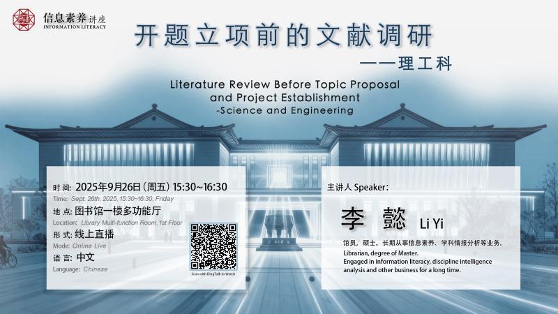For videos of past lectures and more lectures information, please visit the library’s website at the following link: https://lib.intl.zju.edu.cn/zh-hans/learning-research-support/information-literacy-training-schedule