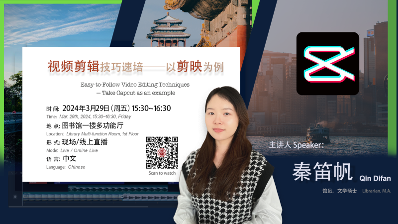 视频在我们的生活、学习中已经是无法忽视的重要存在了,无论是“记录美好生活”,还是团队宣传、活动回顾等的情况,都有视频制作的需要。新手小白如何迅速Get视频剪辑技能,实现从“简单拼接”到“有点厉害”的进阶,本次信息素养讲座,将以“剪映”为主要剪辑工具,助你获得剪辑“急救包”!
