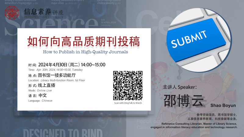 想要让科研成果得到更好的评价与传播,除了论文本身的学术价值外,选择高品质期刊进行投稿也是一个重要手段。那么,目前国内外对学术期刊有哪些评价标准?怎样为科研成果选择高品质的期刊?如何应对和回复审稿人的评审意见?本讲座将介绍学术论文的特点与格式、高品质学术期刊的评价体系,教大家如何查找与选择期刊以及如何与审稿人交流等。
