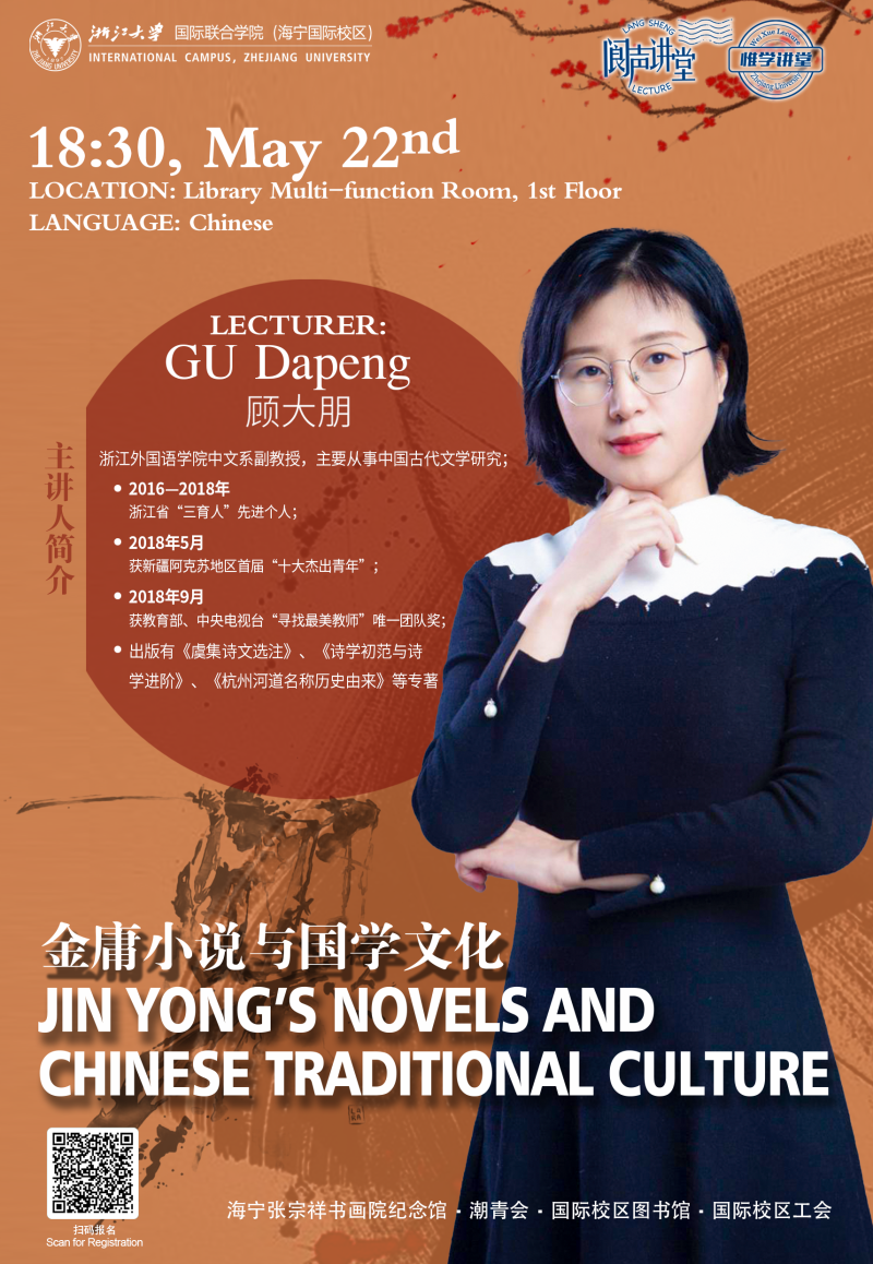 2024年是金庸先生100周年诞辰。金庸先生的小说作品一直以来深受广大读者的喜爱,其作品中不仅包含了丰富的故事情节和鲜活的人物形象,更蕴含了深厚的国学文化元素。为了更好地理解金庸小说背后的文化内涵,以及这些元素对当代社会的后示和影响,浙江外国语学院中文系副教授顾大朋老师受邀带来主题讲座《金庸小说与国学文化》。届时,图书馆一楼中庭将展出“家国情怀·大侠金庸——金庸诞辰100周年纪念展”,欢迎到场观展。