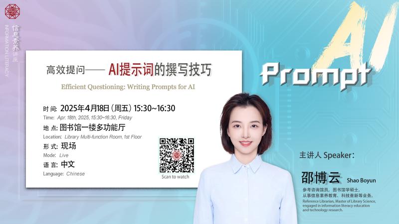 还在为AI输出的"鸡肋回答"而困扰?本次讲座将系统解析人机对话的核心逻辑,助你从被动接受者蜕变为主动引导者。通过科学训练提问思维,不仅能显著提升学术研究的精准度和效率,更能培养智能时代必备的数字素养,使你在文献分析、实验设计、创新思考等领域实现人机协同效能的最大化。